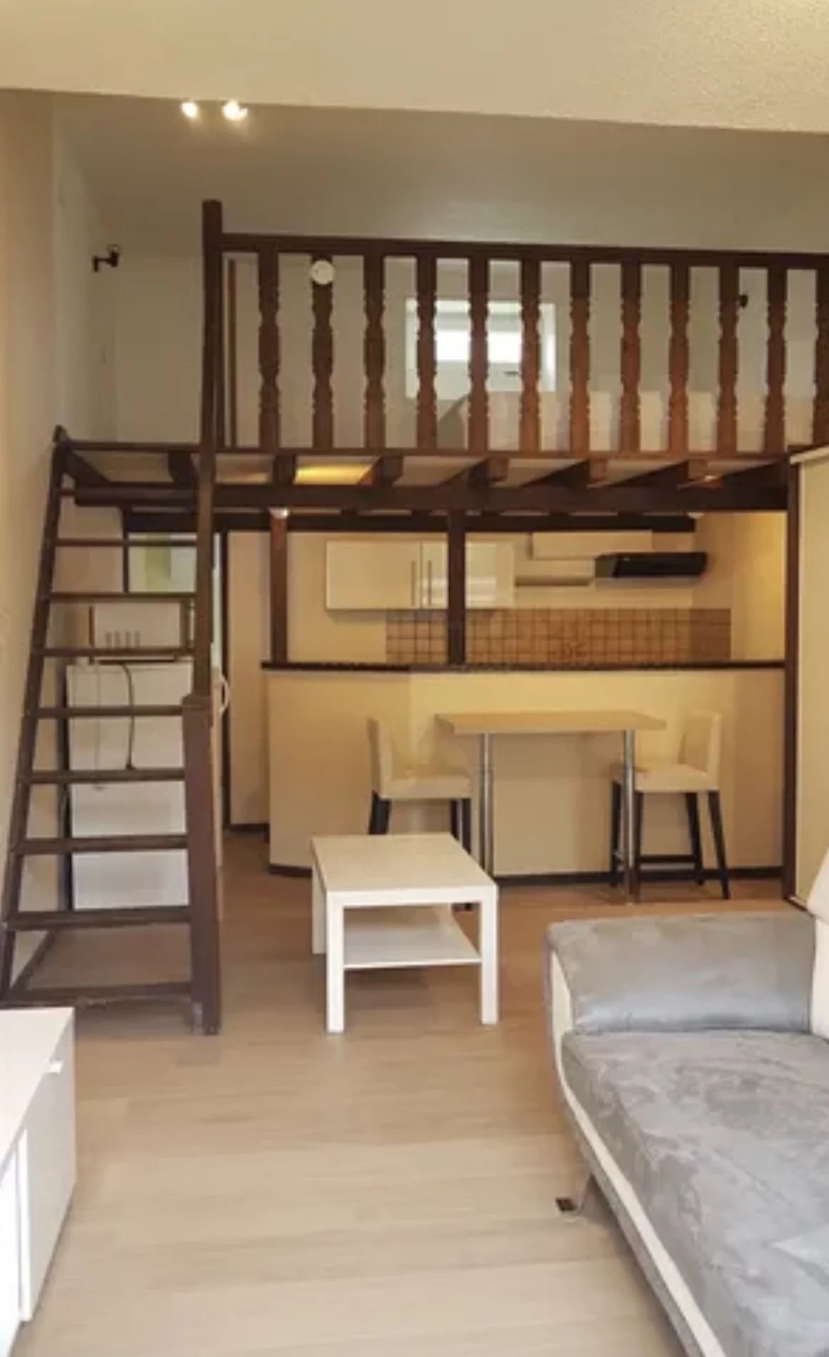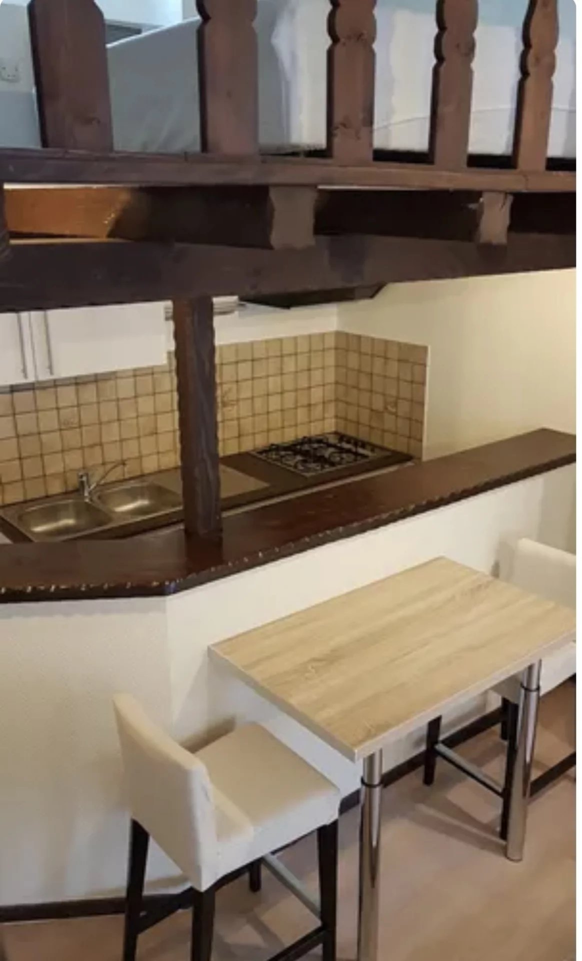 Séjour ouvert sur cuisine meublée, salle d'eau avec WC, espace couchage en mezzanine.