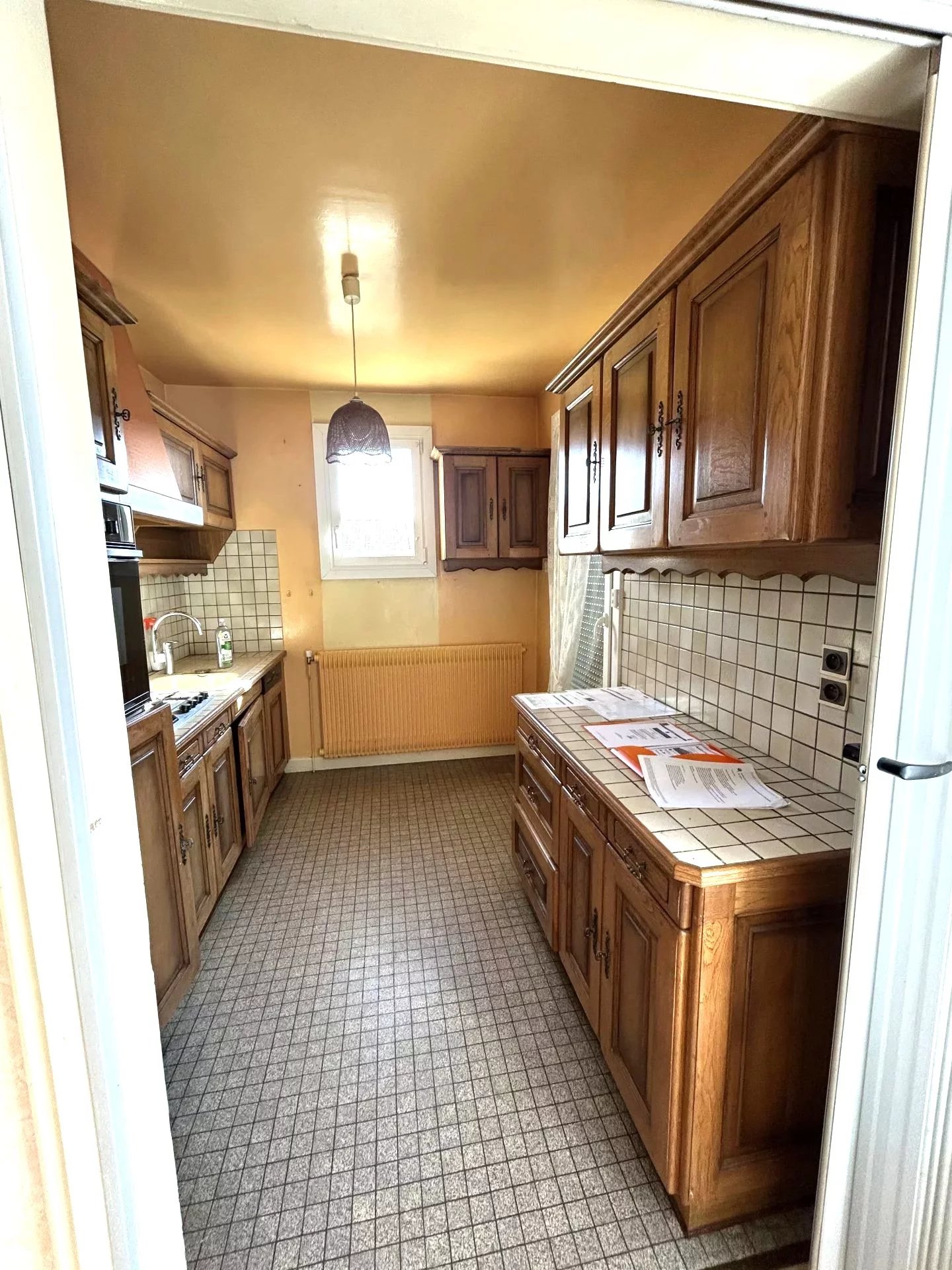 Entrée, cuisine équipée 1/2 ouverte sur séjour double avec cheminée et balcon, trois chambres, salle d'eau, WC indépendant.
